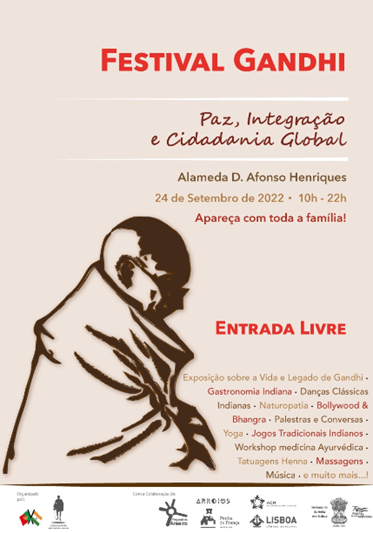 Associação Casa-da-Índia promoverá mais uma edição do Festival Gandhi com vista à promoção dos valores defendidos por Gandhi, são eles: cidadania global, paz e integração. O evento, que terá lugar no dia 24 de Setembro (sábado), das 10h às 22h, no Parque da Alameda D. Afonso Henriques, contará com atividades de yoga, ayurveda, gastronomia, danças, artes indianas e workshops, através das quais pretende-se demonstrar as várias facetas da cultura indiana em Portugal.